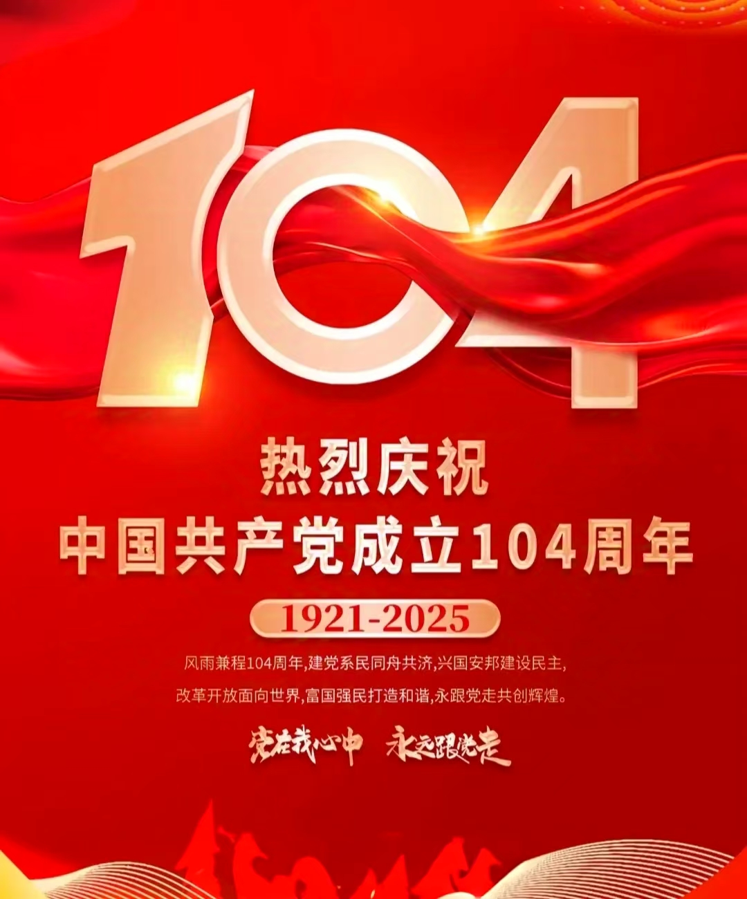 讓我們共同慶祝中國共產(chǎn)黨成立104周年,向偉大的黨致以最崇高的敬意!讓我們緊密團結(jié)在黨的旗幟下,不忘初心、牢記使命,為全面建設(shè)社會主義現(xiàn)代化國家、全面推進中華民族偉大復興而團結(jié)奮斗!在新時代的偉大征程中,續(xù)寫中國共產(chǎn)黨和中國人民新的輝煌篇章!